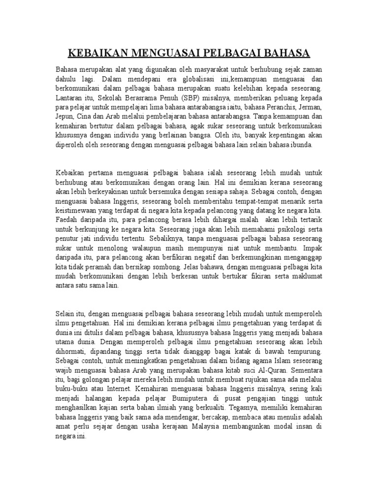 Latihan Kloz Kebaikan Menguasai Pelbagai Bahasa Docx Document from demo.vdokumen.net Tentu dengan bahasa sederhana yang bisa diterima oleh semua pihak. Dengan menjadikan bahasa melayu sebagai bahasa kebangsaan, kita dah boleh menguasai bahasa indonesia. Banyak kebaikan yang dapat diperoleh dengan membaca. Tuntasnya, kemahiran menguasai bahasa asing adalah cukup penting untuk semua pihak. Menolong orang yang membutuhkan dan makukan beragam kebaikan nggak bikin kamu tambah jelek ataupun jadi semakin miskin. Dinamakan kebaikan karena akala yang lurus bisa mengenalnya. Belajar bahasa online lokal/ local languangetamanbahasa.com. Barang siapa yang memahami kepentingan bahasa asing pasti akan bertindak segera kerana mahu merebut kebaikan yang ditawarkan oleh bahasa tersebut.